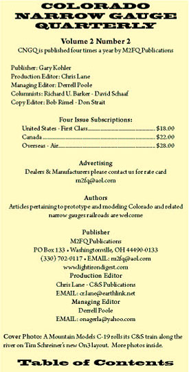Four times per year, devoted to all Colorado narrow gauge railroads, and adjoining states (Utah and New Mexico).